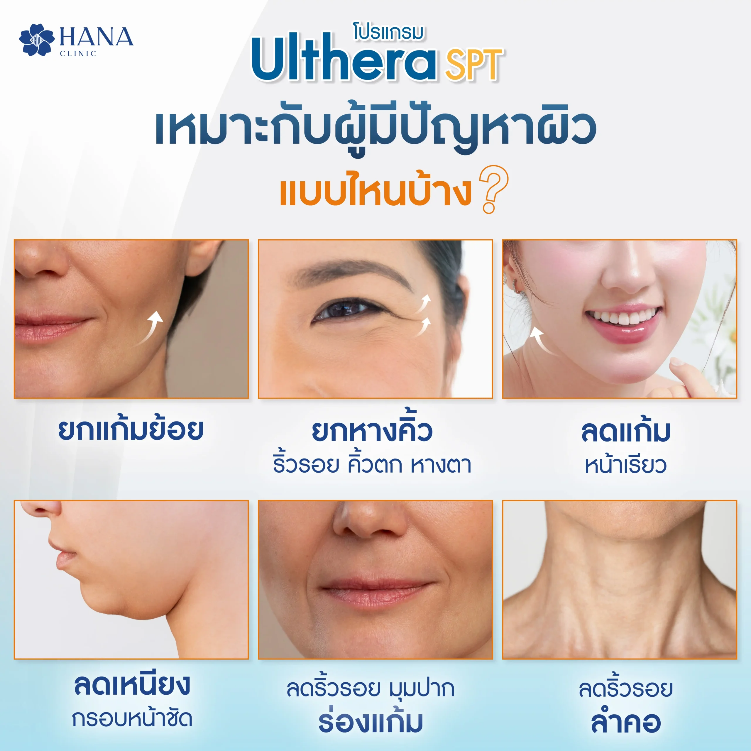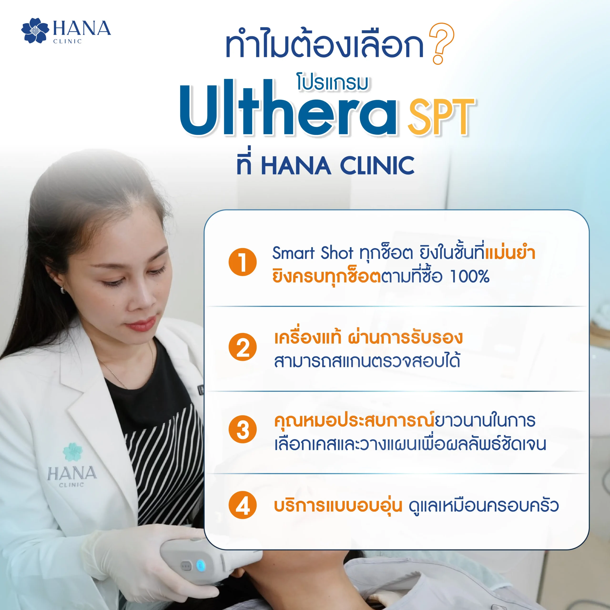 Ulthera SPT คือเทคโนโลยียกกระชับผิวชั้นสูงที่ผสานความแม่นยำ ปลอดภัย และเห็นผลยาวนาน เหมาะสำหรับผู้ที่ต้องการยกกระชับโดยไม่ผ่าตัด การเลือกทำกับแพทย์ผู้เชี่ยวชาญและเครื่องแท้สำคัญมาก เพื่อให้ได้ผลลัพธ์ที่คุ้มค่าและปลอดภัยที่สุด ที่ ฮานะคลินิก คุณจะมั่นใจได้ว่าทุกช็อตที่ยิงคือการลงทุนเพื่อความสวยที่ยั่งยืน