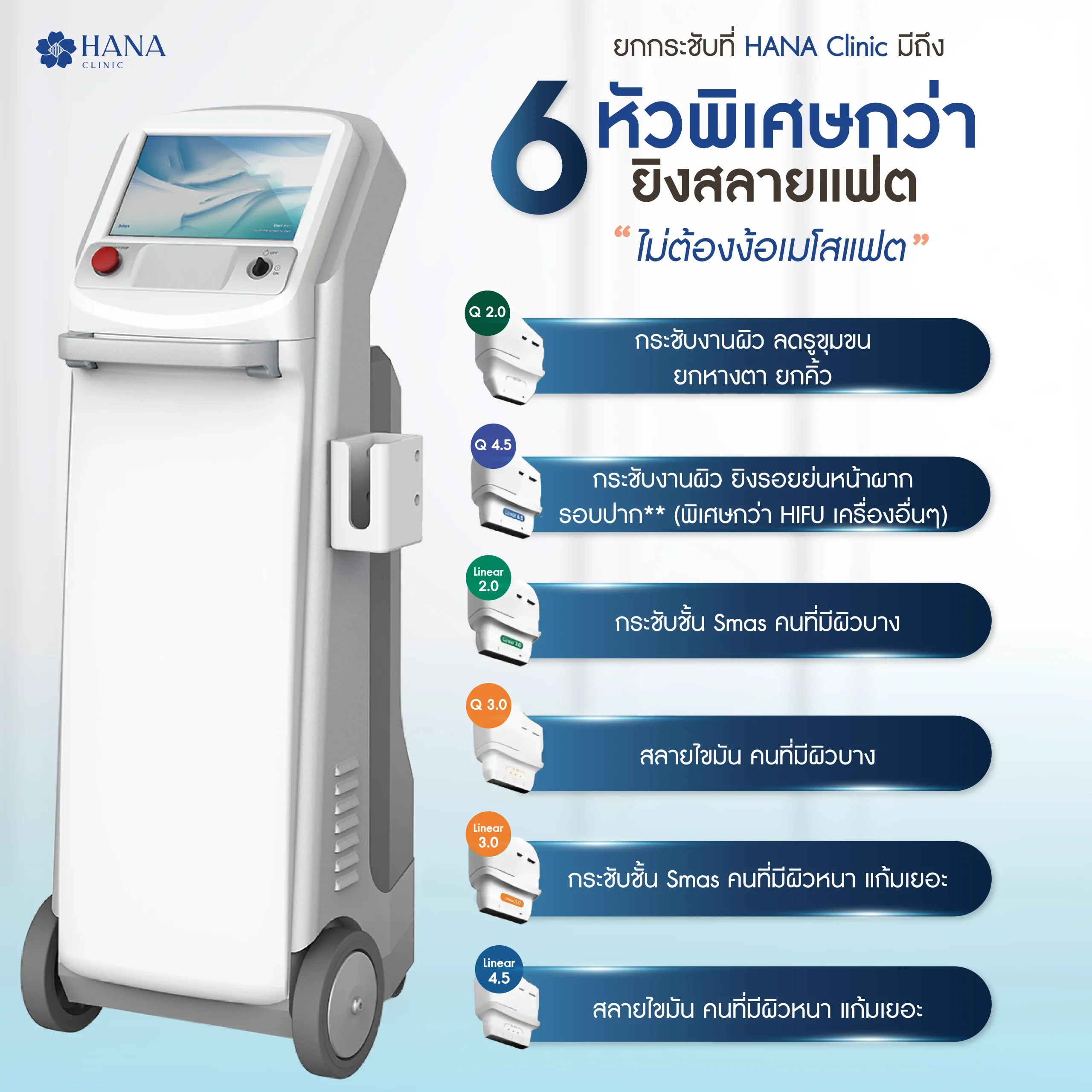 A: HIFU ใช้คลื่นอัลตราซาวด์เพื่อยกกระชับจากภายใน โดยไม่มีการลงเข็มหรือร้อยไหม จึงปลอดภัยและไม่มีบาดแผล เหมาะกับผู้ที่เริ่มมีความหย่อนคล้อยระดับเล็กถึงกลาง